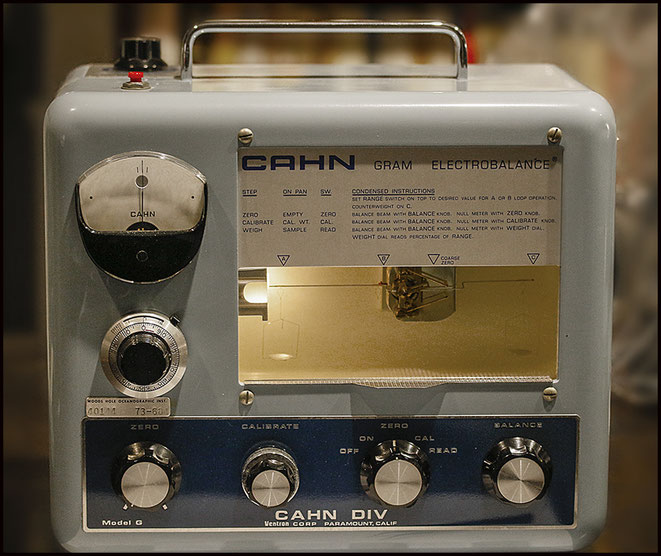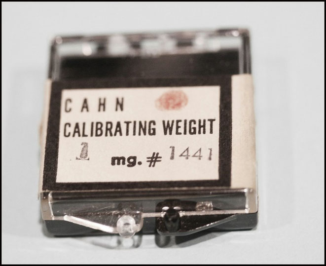 Die von mir eingesetzte Waage war die schon unter "Quantitative Techniken" (s.o.) vorgestellte "Cahn-Waage" (Cahn-Gram-Electrobalance), mit einer Empfindlichkeit von 0,1 µg im Meßbereich von bis