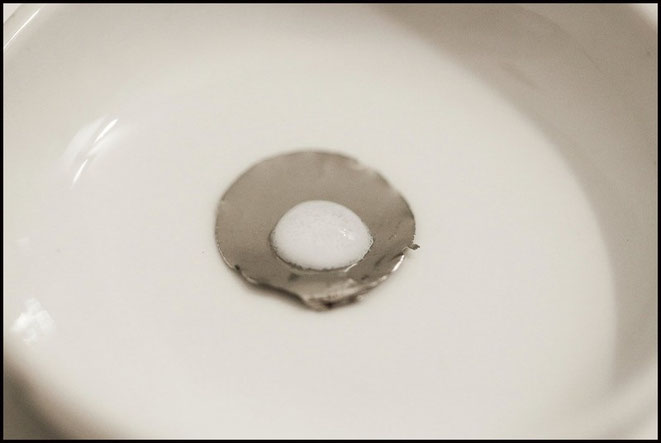 Das heißt: die Testsubstanz ( hier 0,1 M AgNO3-Lösung ) wurde unmittelbar auf der Waagschale mit 0,2 M HCl versetzt.
