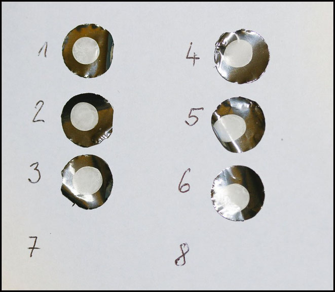 Schwankungen der Messungen konnten so m.E. nur durch geringste Volumenunterschiede beim Aufbringen der Testsubstanz (trotz Mastertips) entstehen. Die Möglichkeit, daß sich Fehler in den